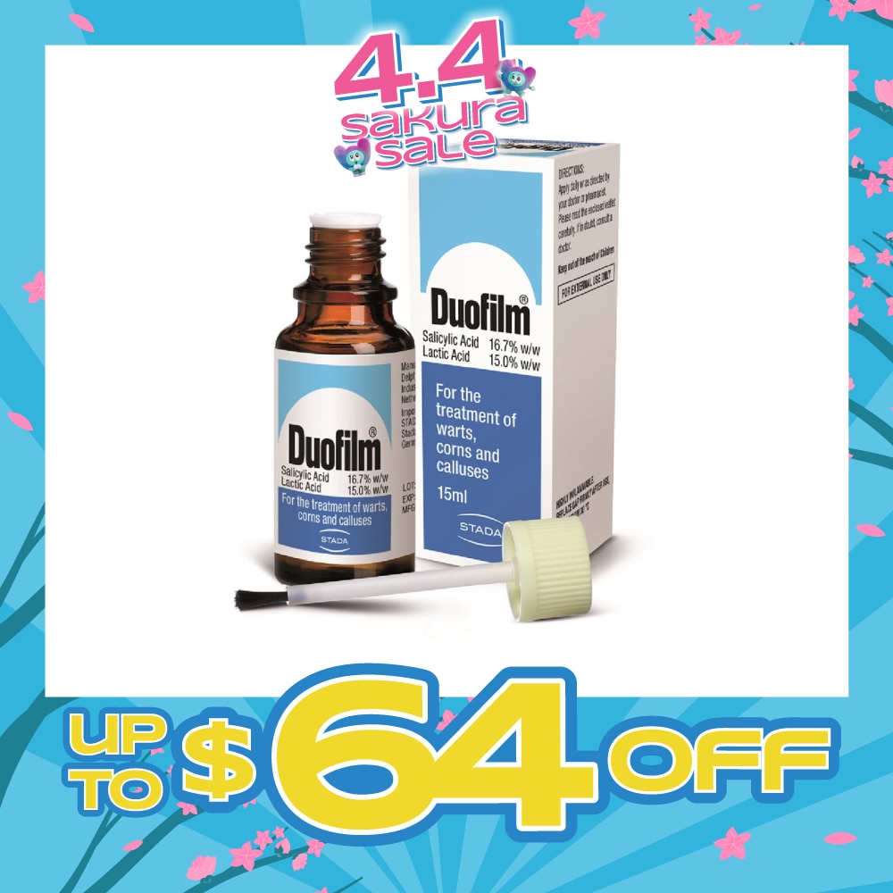 Duofilm 15ml is a topical solution formulated for the effective treatment of common warts, plantar warts, corns, and calluses. It works by softening and gradually removing thickened, hardened skin through a keratolytic action. The dual-acid formula penetrates the affected area, helping the outer layer of skin to peel away over time, allowing the wart, corn, or callus to be removed safely without surgical procedures.