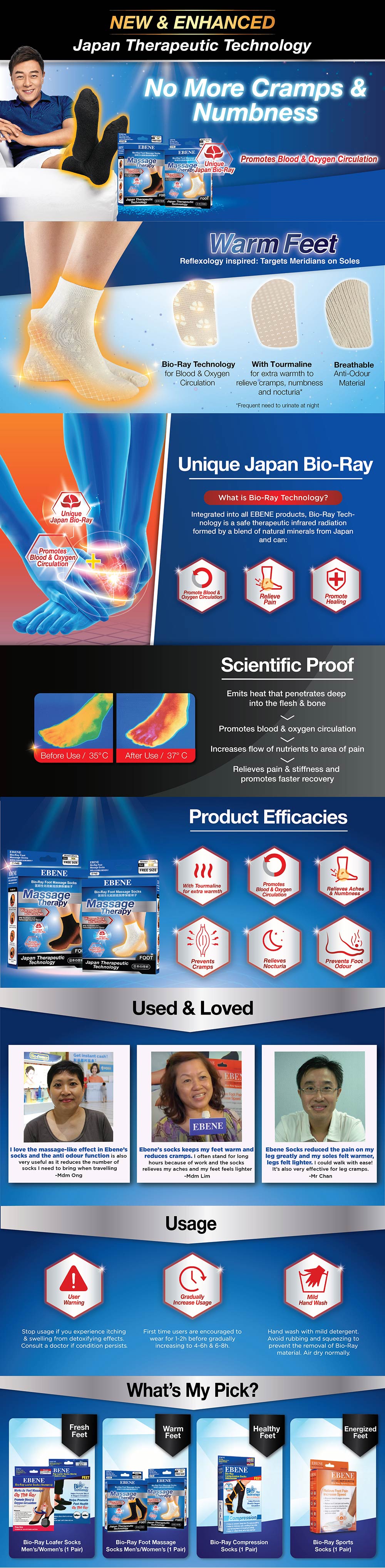 Ebene Foot Massage Socks (Women's) Beige work as a foot massager to promote blood & oxygen circulation in feet. Wear while sleeping at night to help keep body warm & prevent leg cramps, helps relieve stress & tiredness of feet after long hours of walking or standing, provide energy to increase running speed during exercise, helps to prevent foot & shoe odour, helps relieve nocturia problems