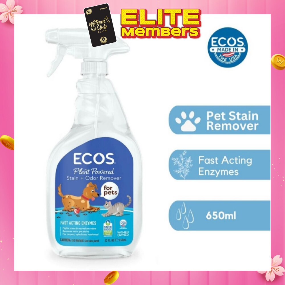 ECOS odor-eliminating formula uses fast-acting enzymes to eliminate odors and lift away pet stains.