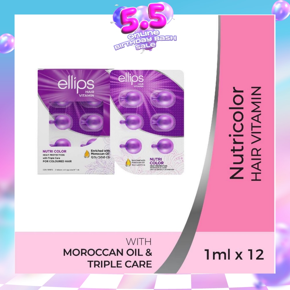 Ellips Hair Vitamin enriched with Moroccan Oil and Triple Care Formulation to protect against sun damage, nourish and restore shine to coloured hair, making it easier to manage. hair looks healthier and shinier