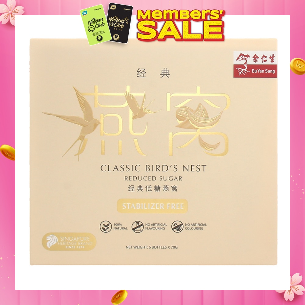 Eu Yan Sang Classic Bird's Nest with Reduced Sugar is produced in line with our enduring commitment to the highest quality standards. Eu Yan Sang Classic Bird's Nest with Reduced Sugar uses only Genuine superior quality bird's nest, Rich in bird's nest strand and All natural ingredients.