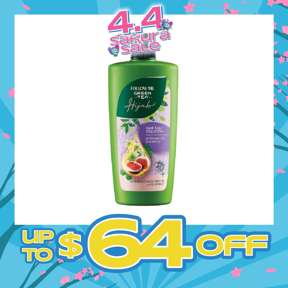 FOLLOW ME Green Tea HIJAB Hair Fall Solution pH-Balanced Shampoo with Habbatus Saude Seed Oil & Fig Extract (Strengthens Weak Hair) 650ml