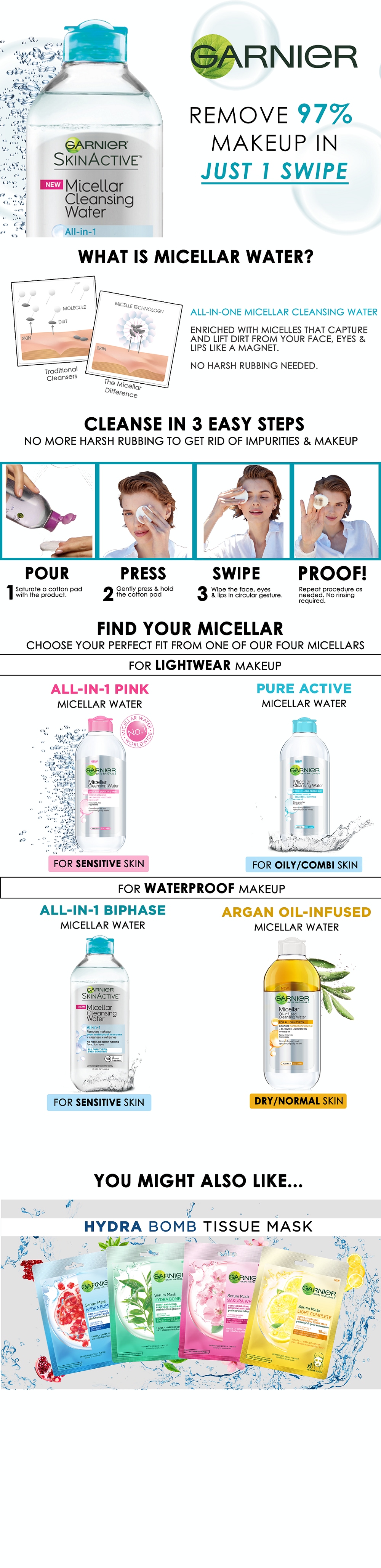 Like a magnet, micelles capture and lift away dirt, oil and makeup without harsh rubbing, leaving skin perfectly clean, hydrated and refreshed without over-drying.