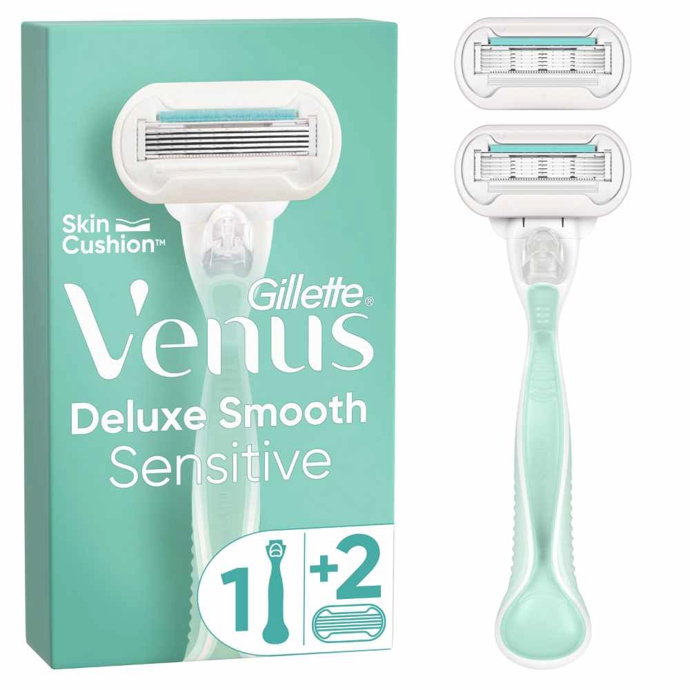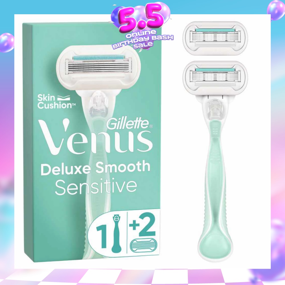 GILLETTE VENUS Deluxe Smooth Sensitive Women's Razor Packset consists Handle 1s + Refill 2s (Designed to Avoid Rust)