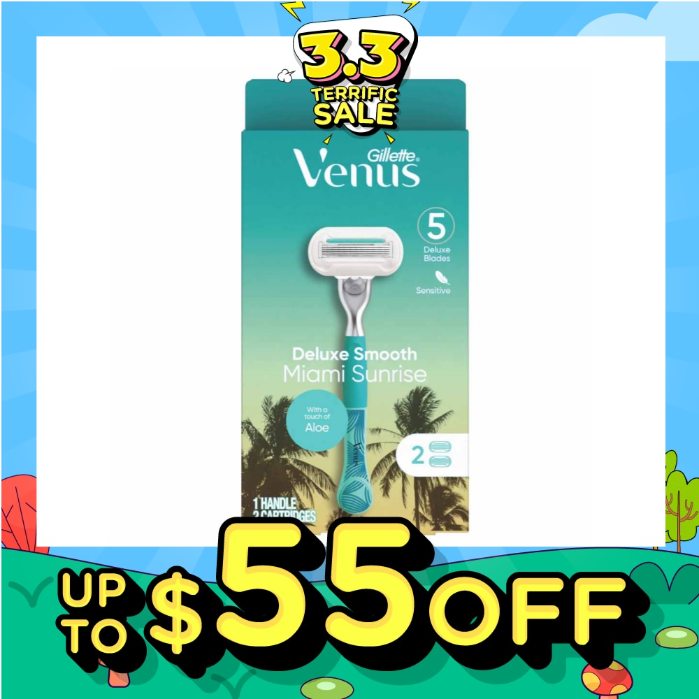 GILLETTE VENUS Miami Sunrise 5 Deluxe Smooth Sensitive Pack Set (1 Handle & 2 Cartriges) 1s