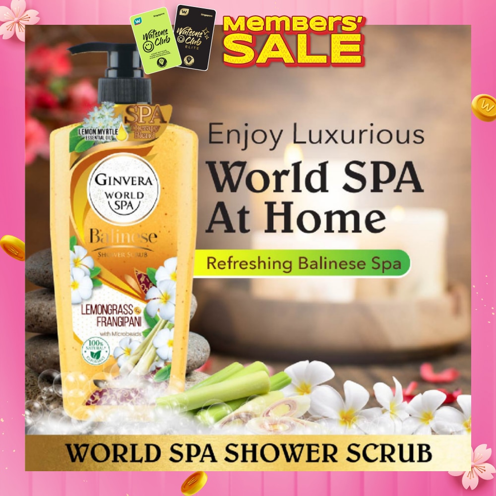Let Ginvera take you on a daily SPA journey with its World SPA series. Experience the Balinese SPA experience with this Lemongrass & Frangipani shower scrub to recharge your body & mind.The uplifting fragrance of Lemongrass & Frangipani has been blended together to revitalize your mind with a Balinese SPA feel. At the same time the natural exfoliant in the shower scrub along with microbeads encapsulated Vitamin E gently exfoliate your skin to give it a silky smooth feel.