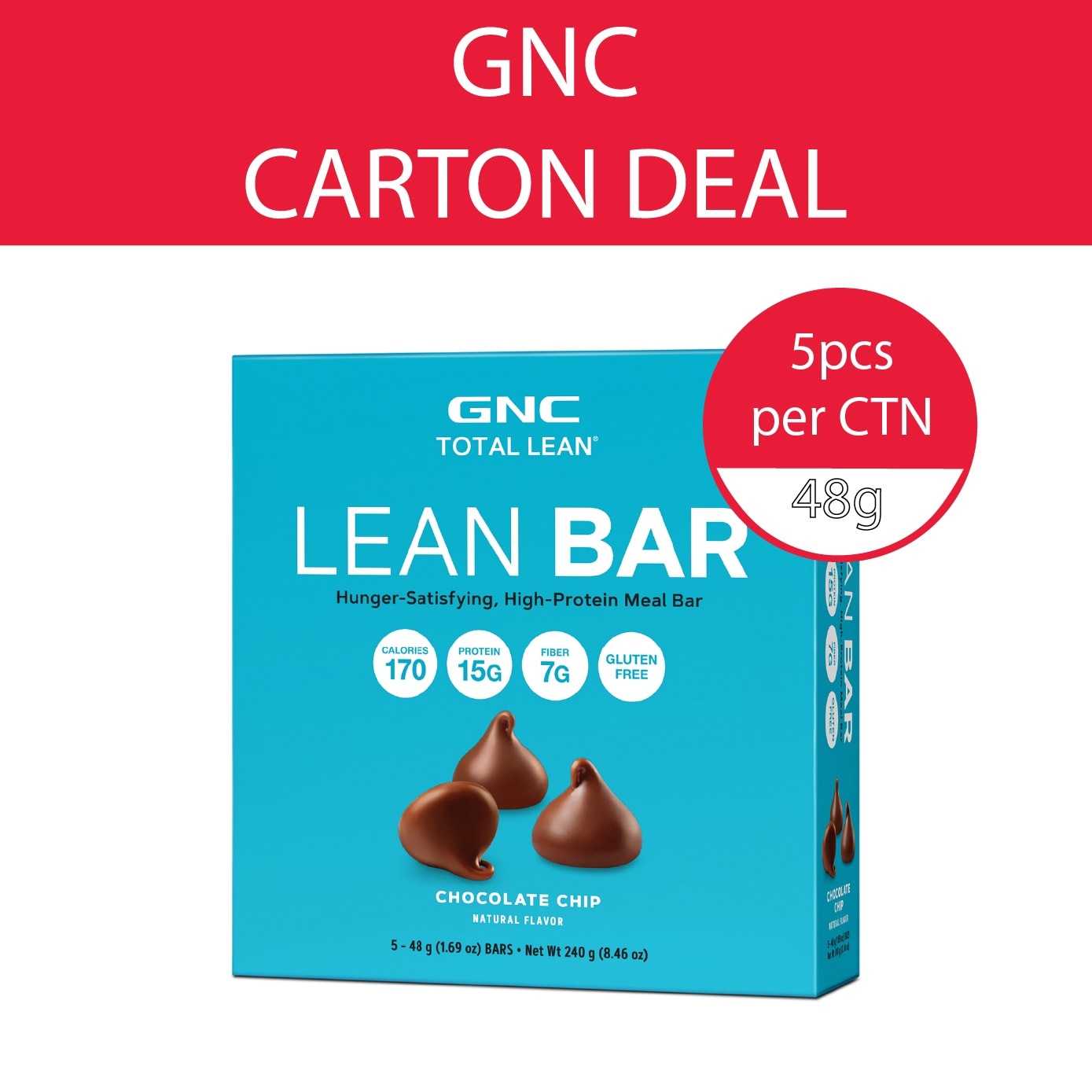 GNC Total Lean Bar Protein Snack Bar Chocolate Chip 48g x 5s