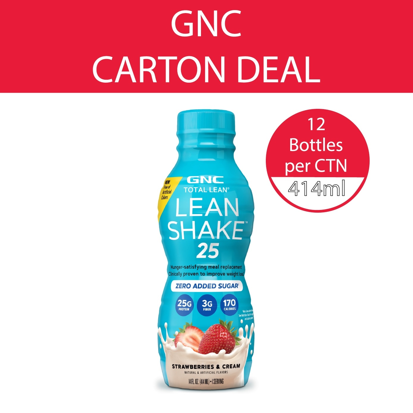 GNC Total Lean Shake 25 Ready to Drink Zero Added Sugar Strawberries & Cream 414ml x 12s
