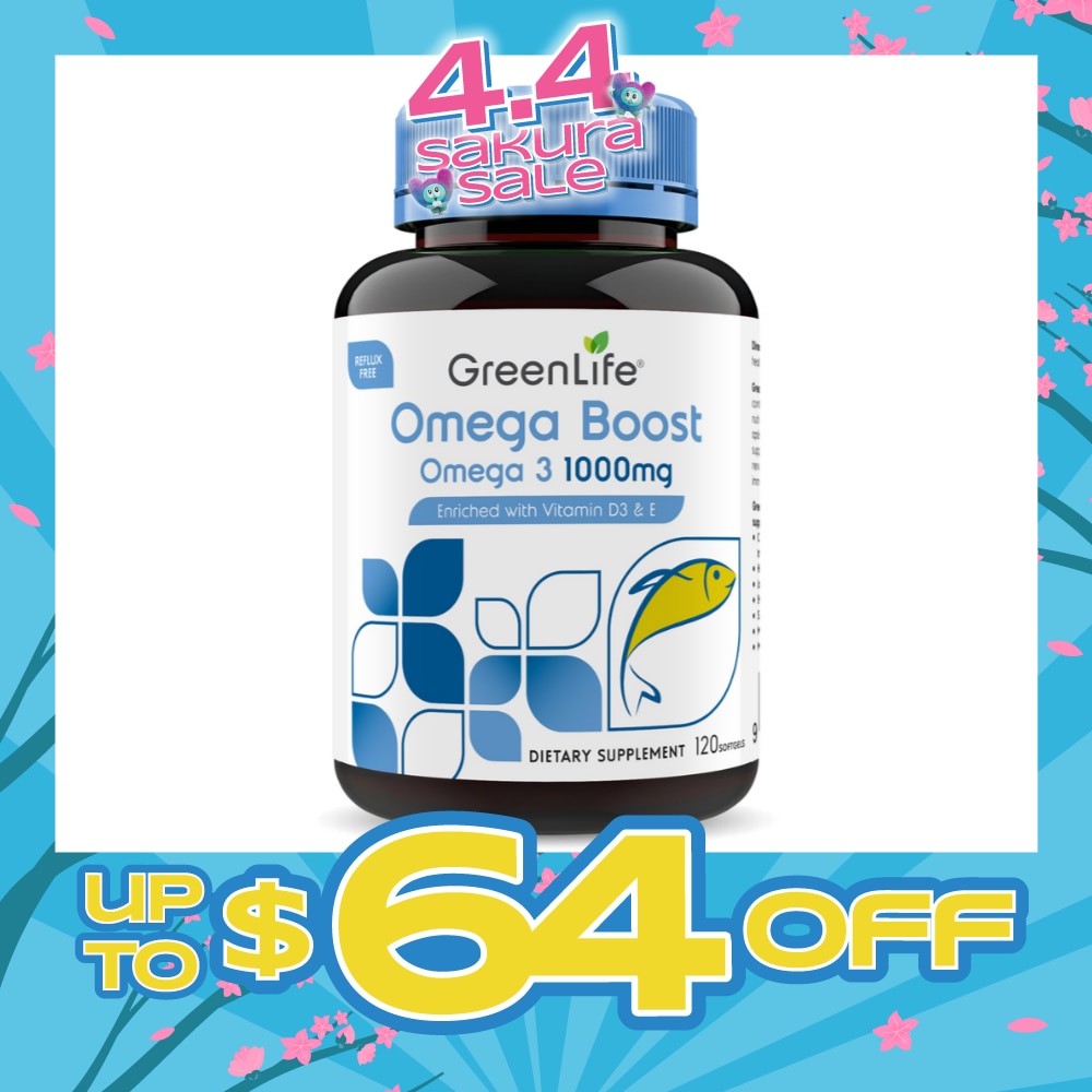 GREENLIFE Omega Boost 1000mg Fish Oil Enriched With Vitamin D3 & E Dietary Supplement Softgel (To Support Cardiovascular Wellness, Brain, Nervous System Function, Eyes, Vision, Skin Integrity, Immune & Musculoskeletal Wellbeing) 120s