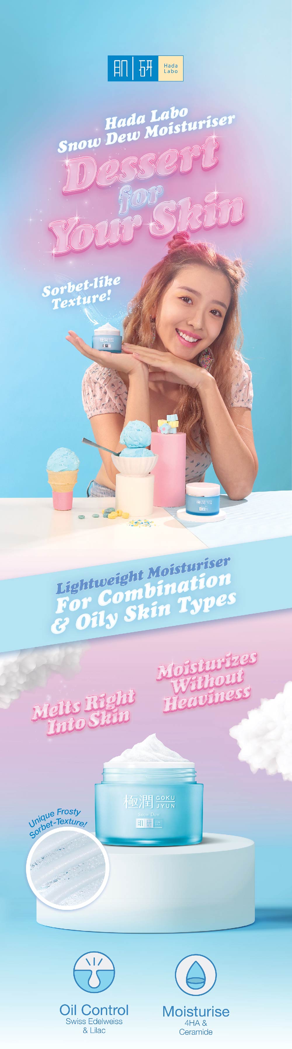 Hada Labo Hydrating Snow Dew has Sorbet texture that melts into skin for an instant refreshing feel