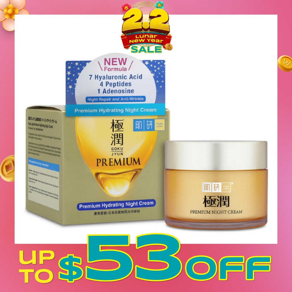 HADA LABO Premium Hydrating Night Cream (Anti-Wrinkle + Maintain Skin Elasticity + Improve Dry & Dehydrated Aging Skin) 50g