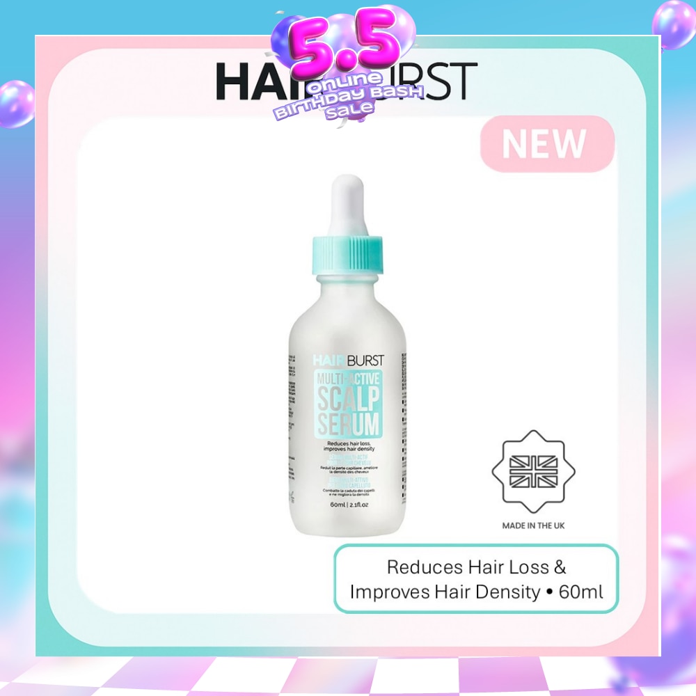 Apply 20 drops of Hairburst Multi-Active Scalp Serum 60ml onto the scalp and massage it in. Do not rinse. Apply it in the evening and brush the hair in the morning. Use on wet or dry scalp.