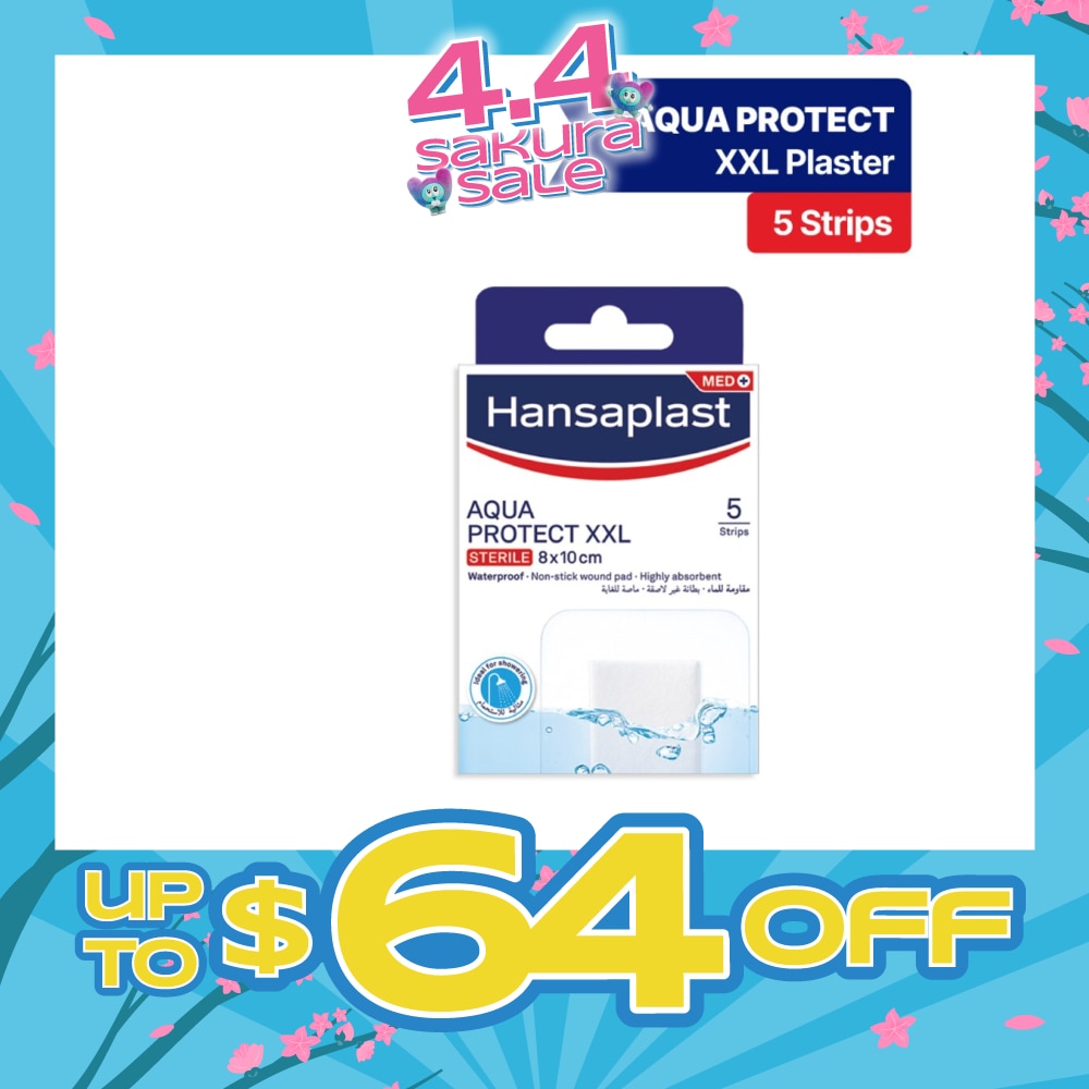 Hansaplast Aqua Protect XXL plasters are sterile wound dressings for waterproof protection of larger or post-operative wounds.