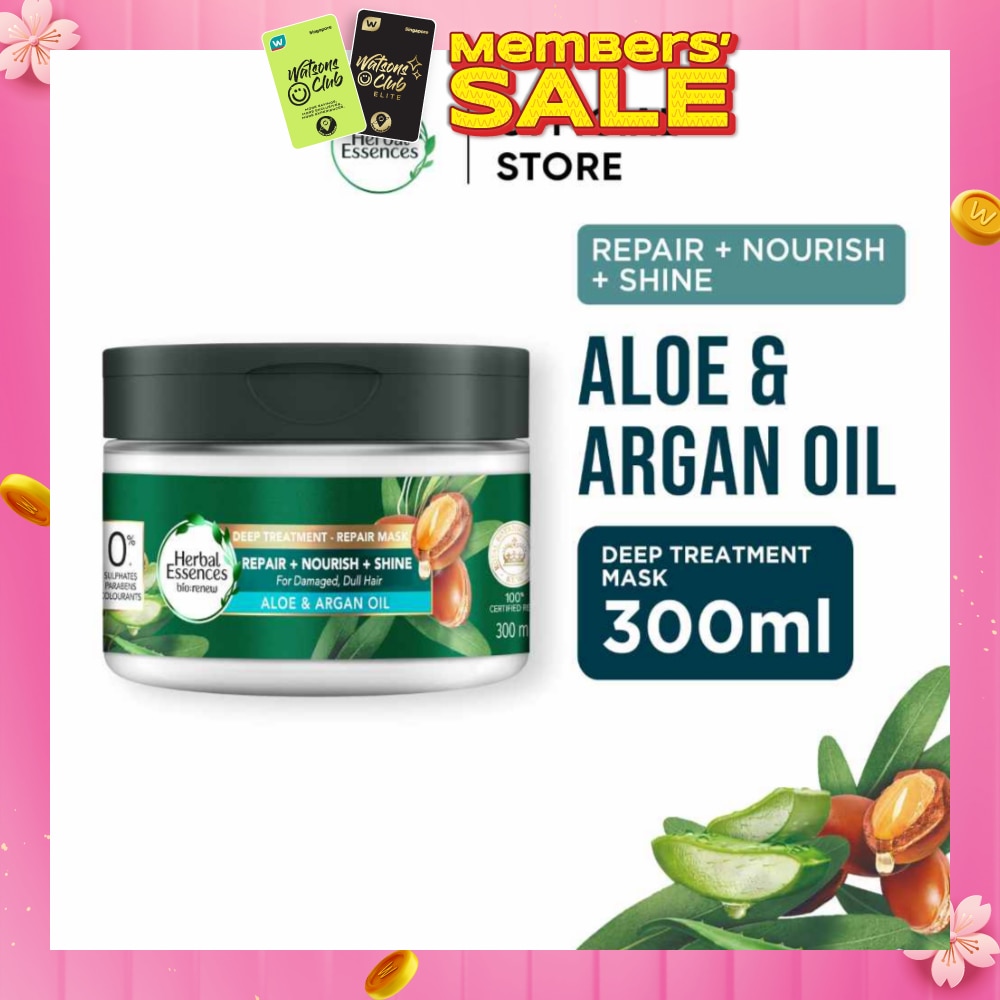 Deeply Nourish for Revitalised Hair! Treat your hair to a luxurious, deeply nourishing experience with the Herbal Essences Bio Renew Deep Treatment Repair Hair Mask. Infused with real Aloe & Argan Oil of Morocco, this hair mask repairs and nourishes to restore shine in dry, damaged hair. Endorsed by the Royal Botanic Gardens, Kew, it harnesses the power of nature to give your hair the nourishment it deserves.