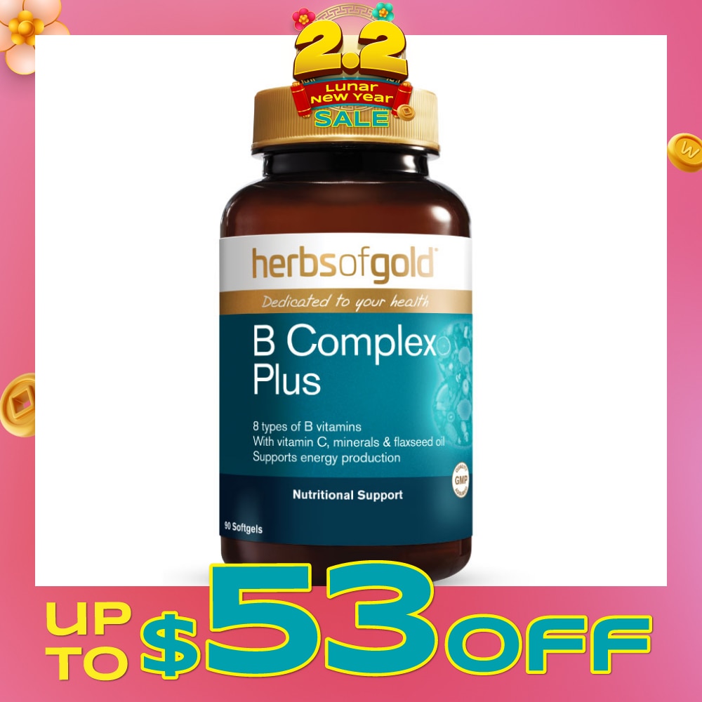 Herbs of Gold B Complex Plus combines the nutritional goodness of all 8 types of B vitamins and other nutrients to helps improve energy levels throughout the day and reduce tiredness and fatigue, in a convenient once-a-day dose.