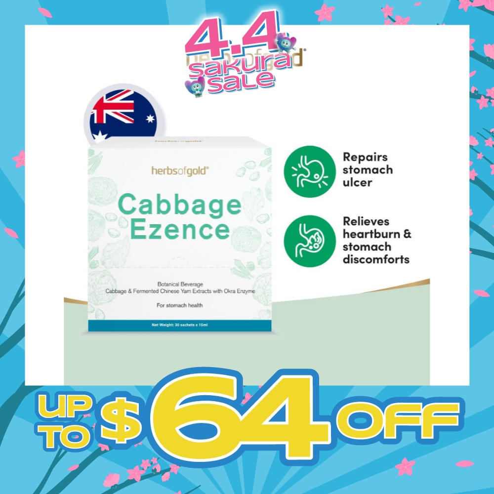HERBS OF GOLD Cabbage Ezence For Stomach Health Sachet (Repairs Stomach Ulcer, Relieves Heartburn& Stomach Discomforts) 30s