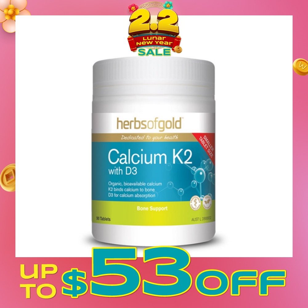 Herbs of Gold Calcium K2 with D3 is an advanced, state-of-the-art bone health formula that contains two forms of bioavailable calcium, vitamins K2 and D3 for optimal bone strength.