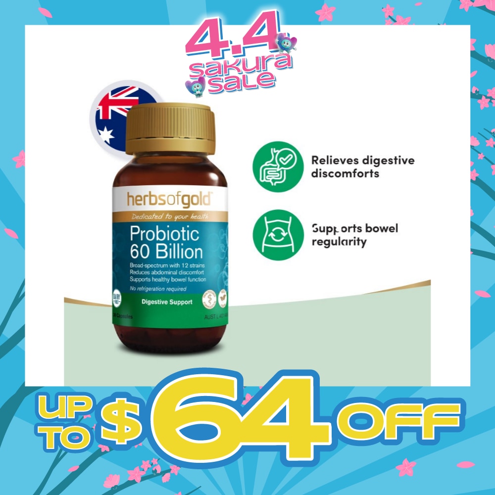 *Probiotic 60 Billion supports digestive system health by helping to restore friendly intestinal flora in the gut.