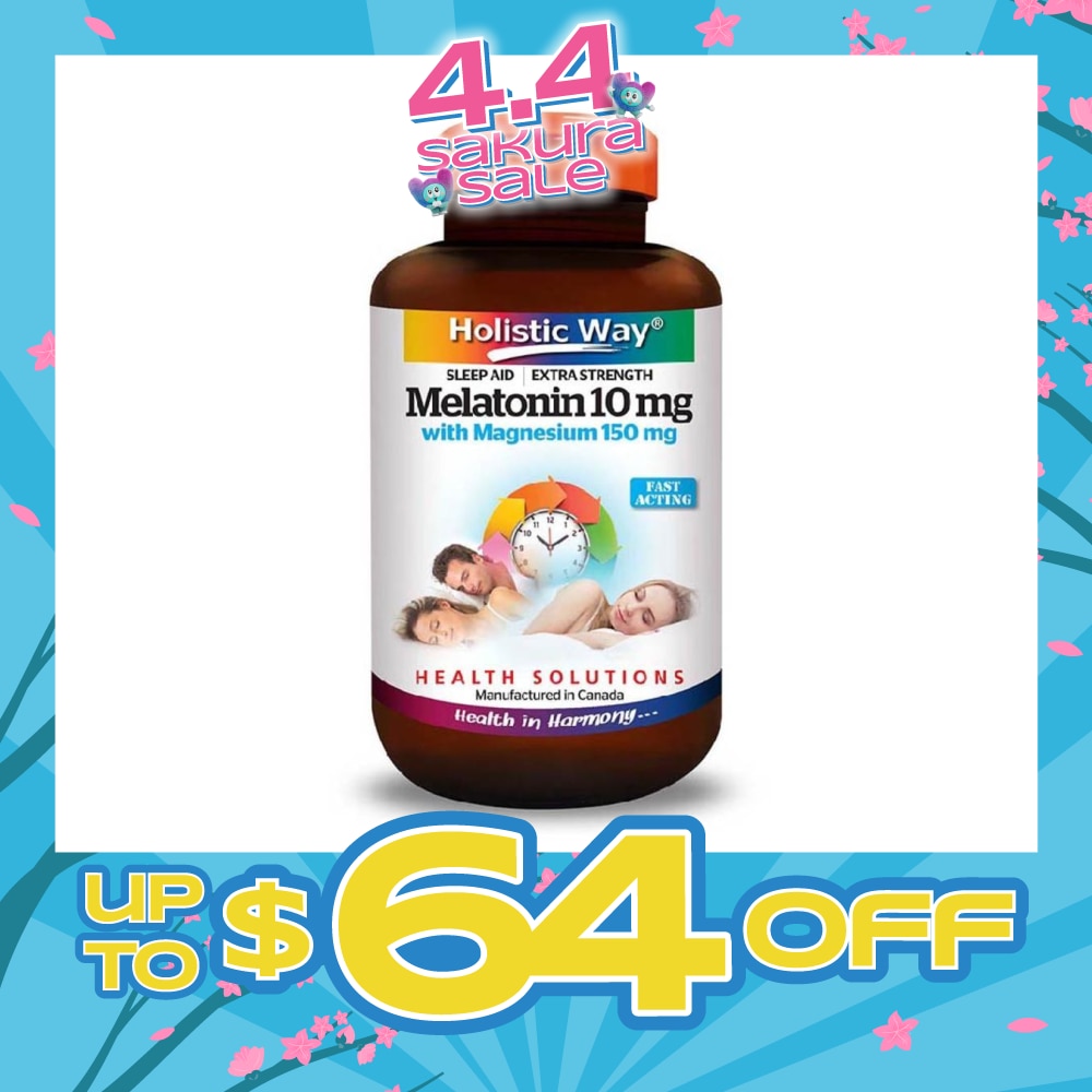 Holistic Way Extra Strength Melatonin 10mg with Magnesium 150mg is a Non Sublingual fast-acting formulation that allows for best possible absorption and works to promote and support sound sleep. This formulation is added with 150mg of Elemental Magnesium to support healthy muscle function and encourage relaxation. It may help increase your sleep time thus giving better sleep quality for people with altered sleeping schedules like shift work and jet lag.