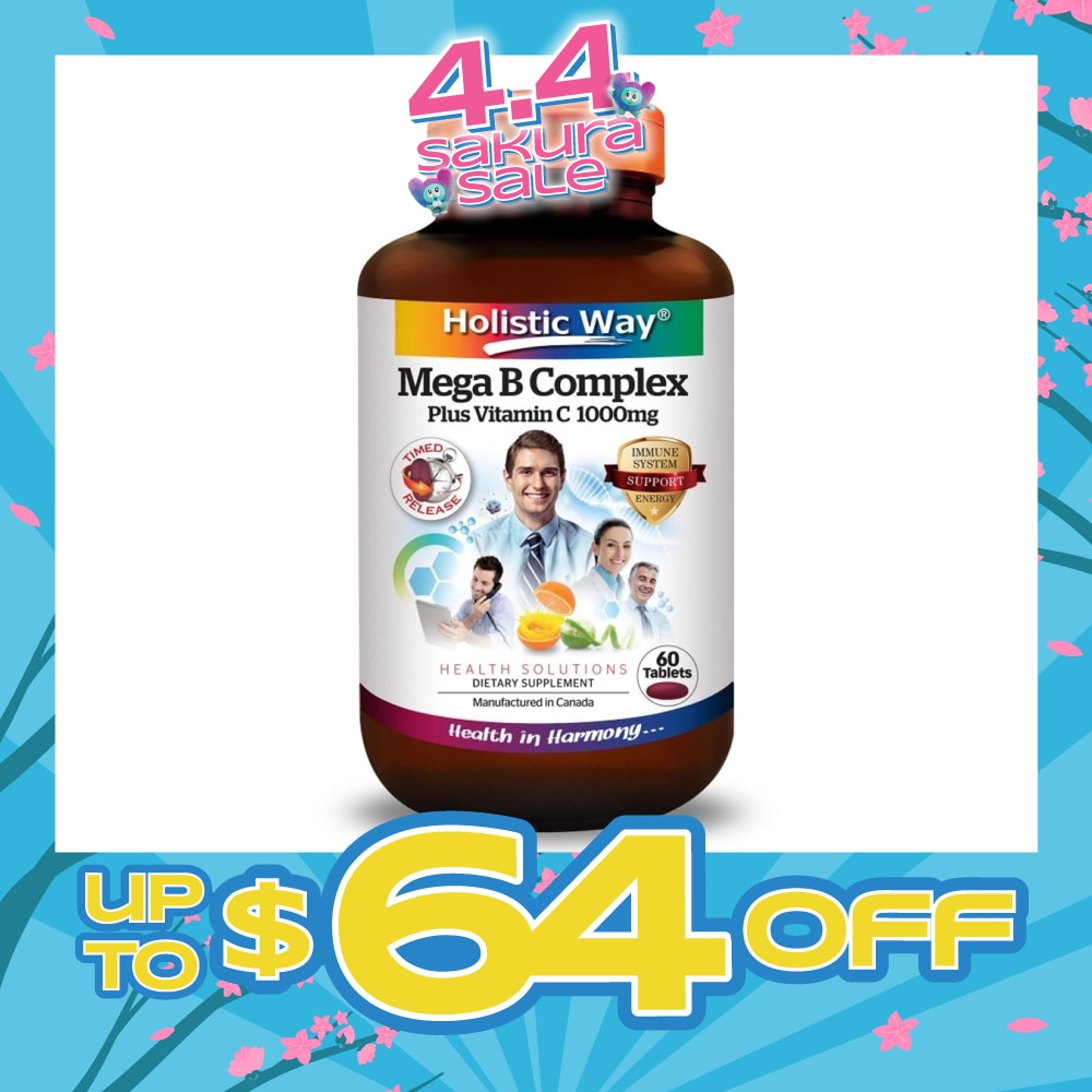 Holistic Way Timed-Release Mega B Complex Plus Vitamin C 1000mg contains a full spectrum of vitamins, which supply our bodies with the nutrients needed throughout the day. This high potency formulation may help to support the nervous system and overall health, promoting good mood, mental clarity and providing energy. It may help support the body in times of stress, encourages energy production and nourishes the nervous system. Vitamin B1 and B2 help to convert carbohydrates and protein into energy and boosting body metabolism. A lack of Vitamin B3 may cause indigestion, while Vitamin B6 will help in protein digestion. Vitamin B6 amount is directly proportional to protein intake amount. Biotin (Vitamin B7) is enzyme component which helps in digestive health. Vitamin C may help in iron absorption.