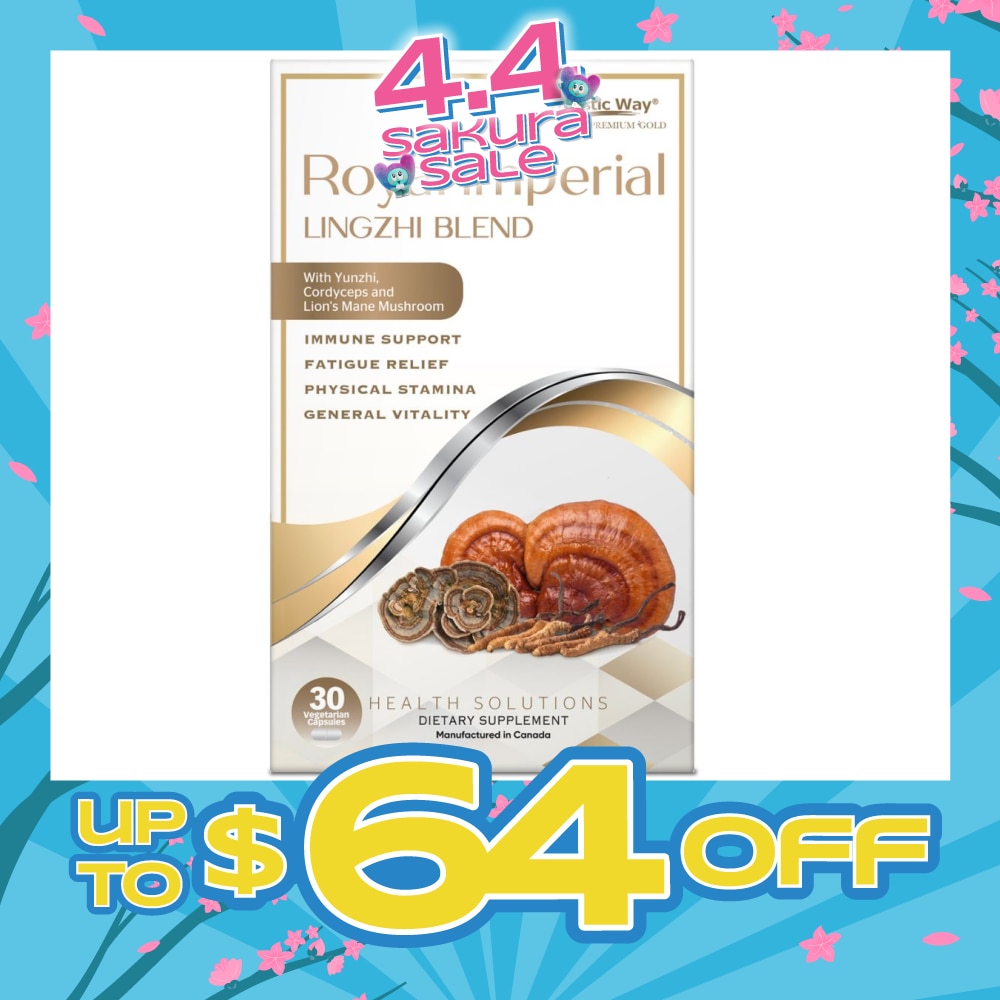 Holistic Way Premium Gold Royal Imperial Lingzhi Blend is a comprehensive All-in-One formula designed to support healthy immune system function and alleviate general weakness and fatigue. It contains Reishi Mushroom and Turkey Tail Mushroom, which are rich in triterpenes, polysaccharides, and beta-glucans known to stimulate a healthy immune system response.