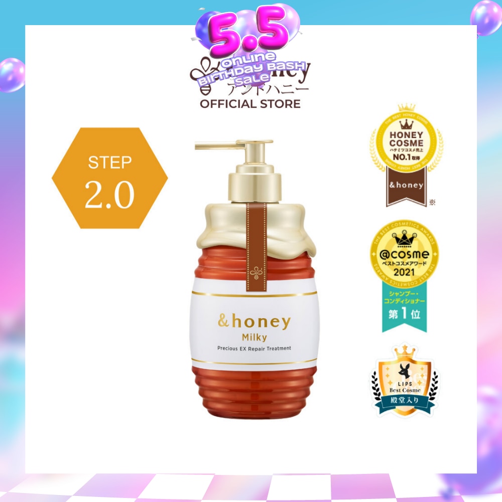 The &honey Milky Precious EX Repair Treatment is a luxurious conditioner enriched with the perfect balance of honey, royal jelly, and keratin proteins to deeply repair and restore moisture to damaged hair. Designed to nourish from the inside out, it targets dryness, frizz, and split ends with its rich emollient base and smooth, creamy texture. Ideal for daily use after shampooing, this treatment improves elasticity, detangles effortlessly, and seals the cuticle for lasting smoothness and radiant shine. Infused with a sweet floral honey fragrance to indulge your senses.
