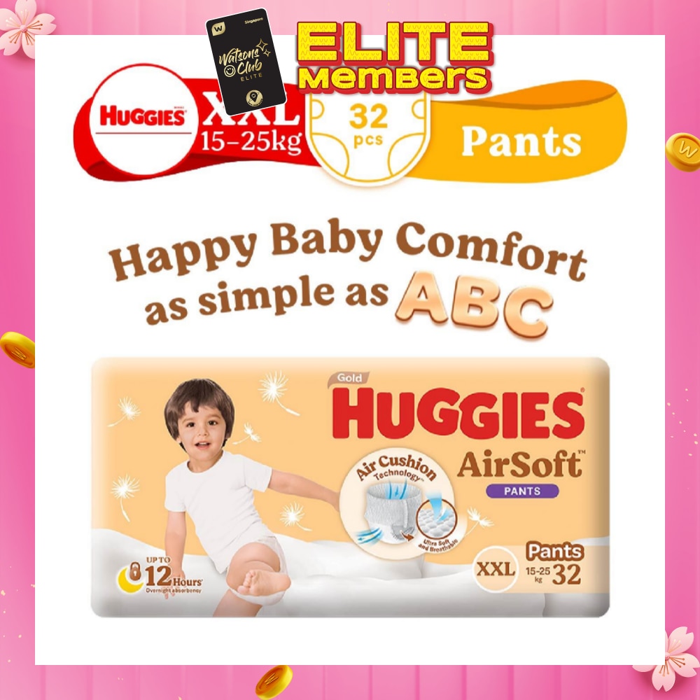 HUGGIES Gold Airsoft Pants Size XXL (For 15kg - 25kg + Ultra Breathable + Stronger Absorption Up to 12hrs) 32s