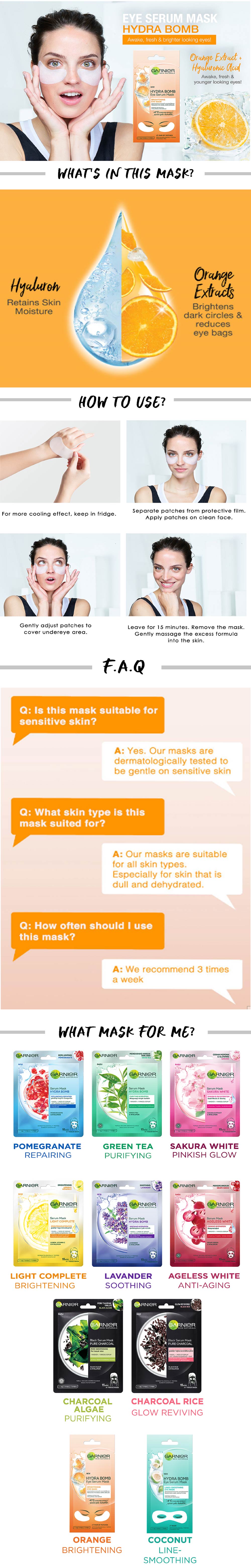 A new generation** of eye masks enriched with brightening Orange Extracts & hydrating Hyaluronic Acid Serum.