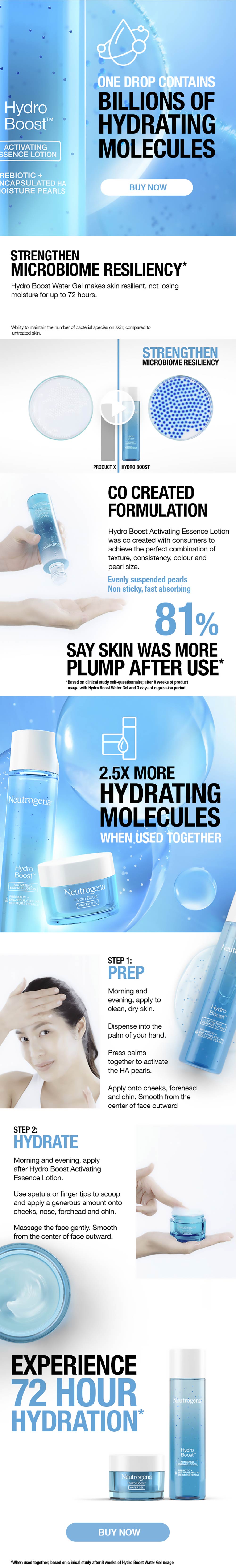 NEUTROGENA Hydro Boost Activating Essence Lotion (Contains Prebiotic Technology And Hyaluronic Acid Pearls + Lightweight And Fast Absorbing) 150ml