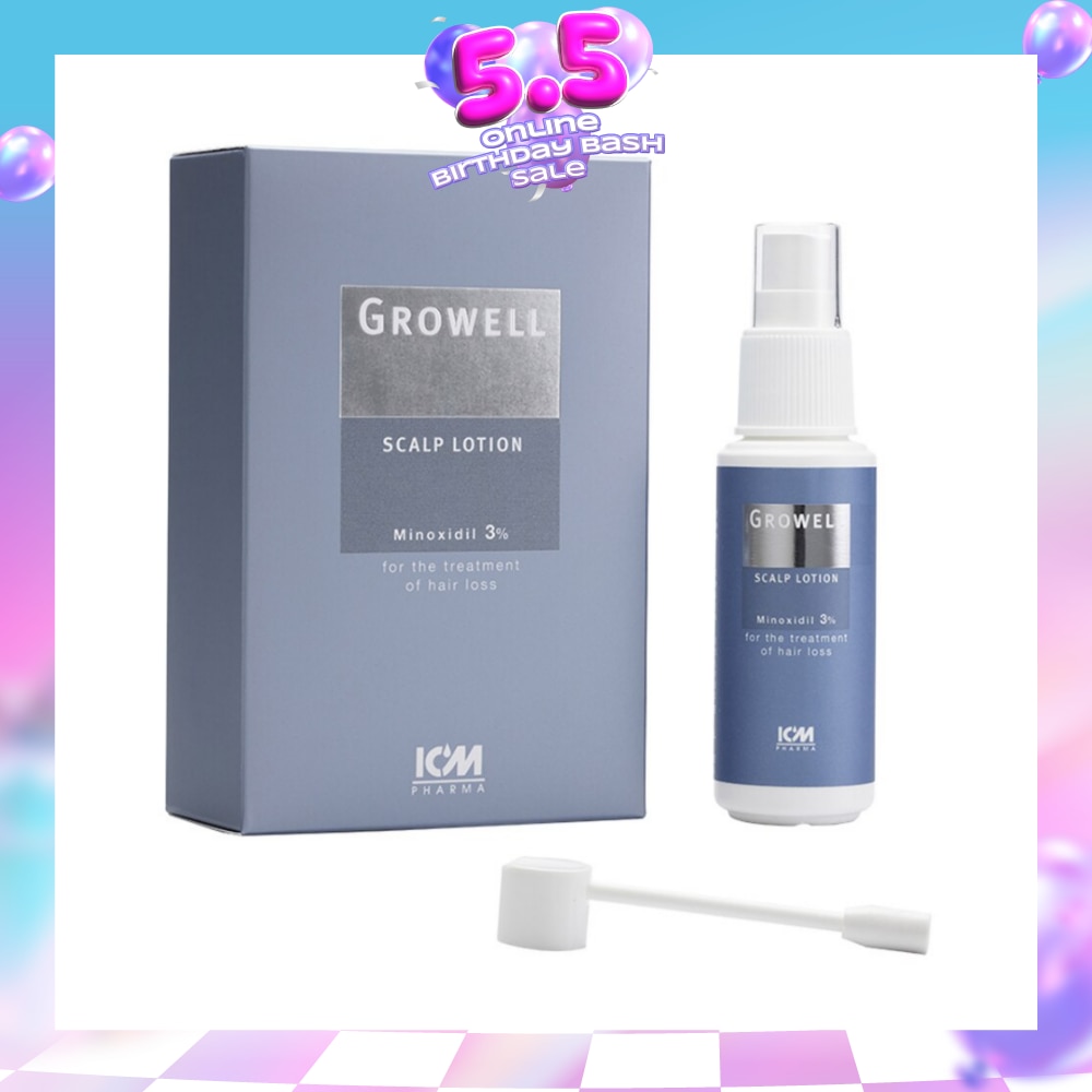 ICM Pharma Growell Scalp Lotion contains Minoxidil the only scientifically proven topical treatment for hair loss that is effective for both men and women. Growell Scalp Lotion works by rejuvenating and enlarging miniatured hair follicles, and stimulating hair growth. Also, it helps maintain new hair and stop hair loss.