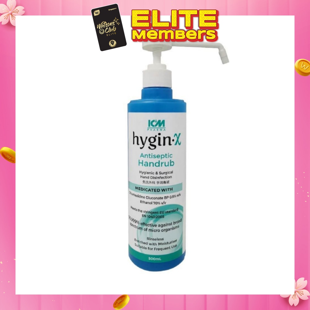 Stop the Germs with HYGIN-X ANTISEPTIC HANDRUB. Widely available in hospitals and medical clinics, Hygin-X tested and passed the BS EN 1040 test method in killing bacteria. It is a ready to use alcohol handrub for hygienic and surgical hand disinfection. Hygin-X is fast acting, no-rinse sanitiser enriched with moisturisers keeping your skin supple and suitable for frequent use.