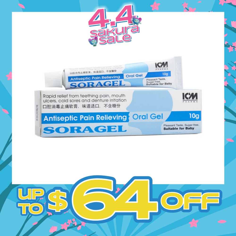 Soragel is a sugar-free pleasant taste oral gel which gives a rapid relief from teething pain, mouth ulcers, cold sores and denture irritation. SORAGEL not only reduces discomfort but also kills the germs to provide deep, long-lasting relief.