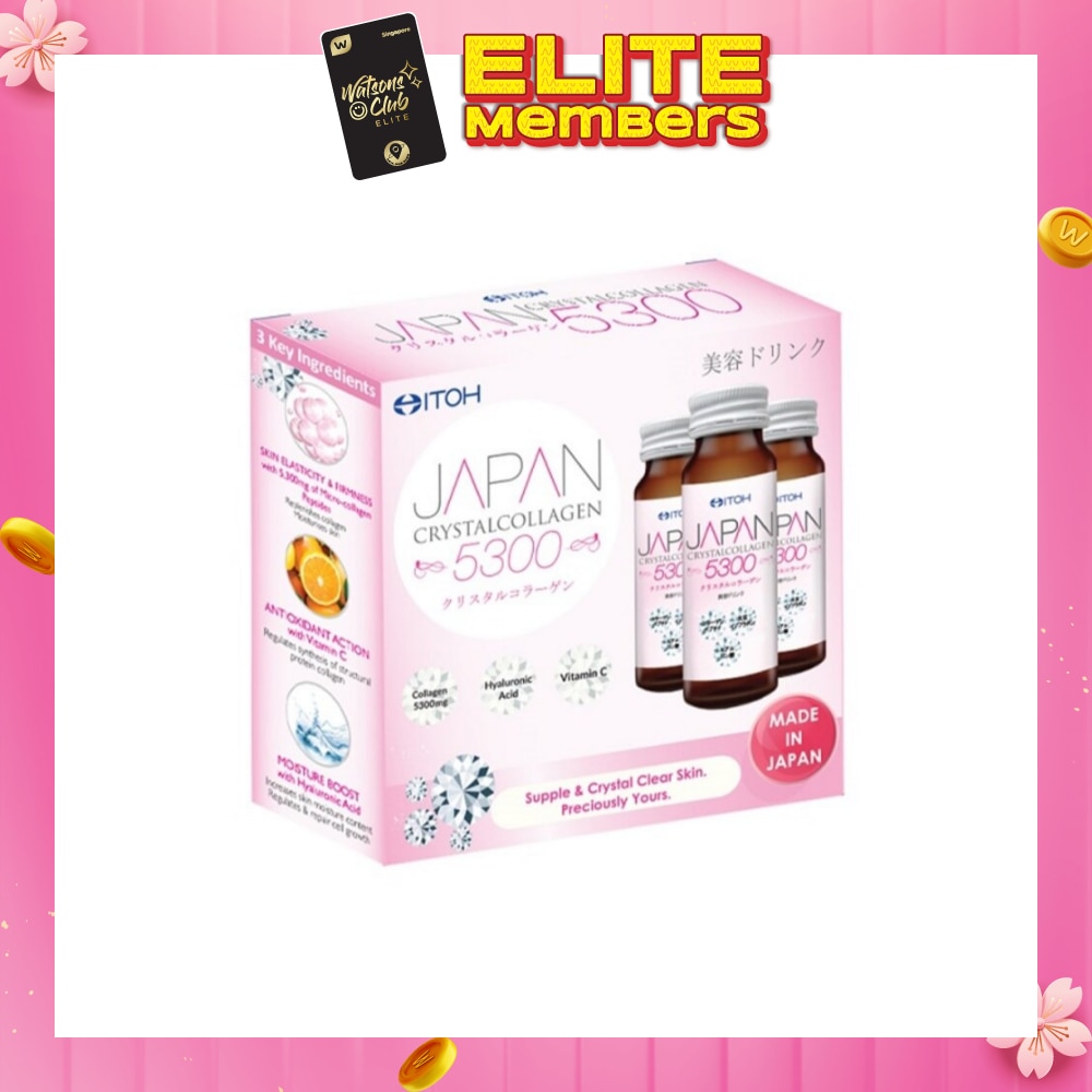 ITOH CRYSTALCOLLAGEN 5300 , beauty collagen drink actively ,nourished and revitalises the skin 5,300mg of low molecular ,collagen goodness, vitamin c and hyaluronic acid , resulting in a plump and smoother skin .
