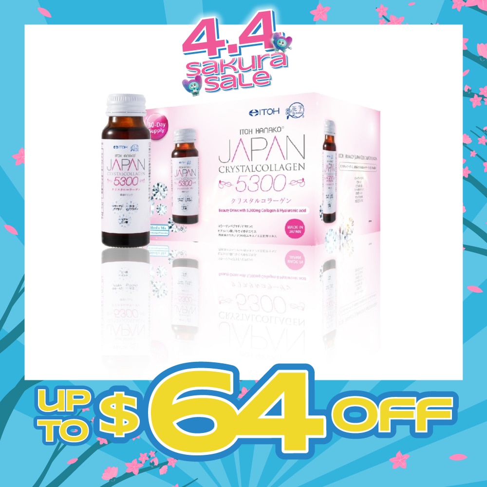 ITOH CRYSTALCOLLAGEN 5300 , beauty collagen drink actively ,nourished and revitalises the skin 5,300mg of low molecular ,collagen goodness, vitamin c and hyaluronic acid , resulting in a plump and smoother skin .