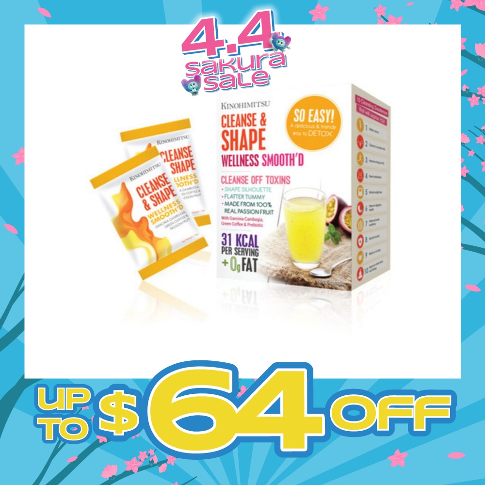 Kinohimitsu Wellness SmoothD Cleanse & Shape is a simple all-in-one delicious natural treat with plant extracts, prebiotic and fruits to gently cleanse the body of toxic obstructions from modern lifestyle, food and environmental pollution. When toxins are removed, your body will function better than ever before leaving you feeling light and healthy!