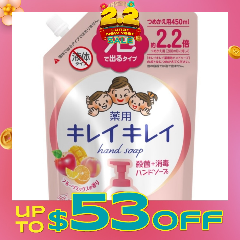 Kirei Kirei Foaming Hand Soap (Fruit Fiesta) is made in Japan, rich in creamy foam with anti-bacterial protection to help clean all parts of hands more thoroughly, yet being gentle on skin.