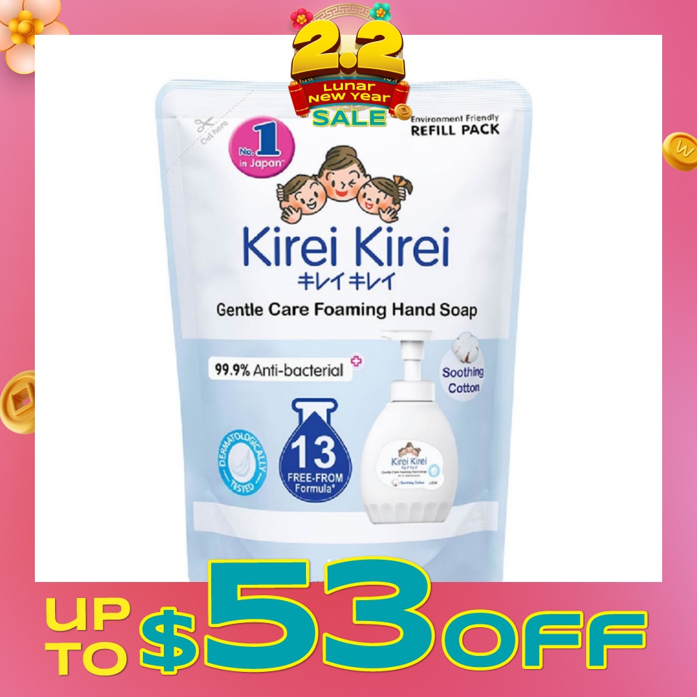 KIREI KIREI Gentle Care Foaming Hand Soap Soothing Cotton is dermatologically tested to be gentle on delicate skin and is free from 13 additives*.