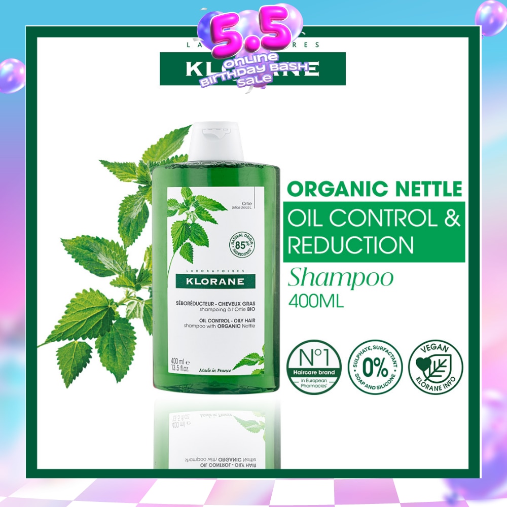 KLORANE Oil Control Organic Nettle Shampoo (To Purifies, Gently Cleanses & Regulates Sebum) 400ml