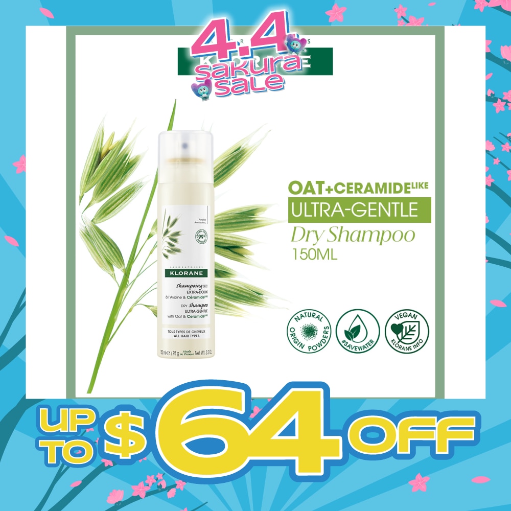 KLORANE Ultra-Gentle Dry Shampoo with Oat & Ceramide (To Gently Cleanses, Repairs Damage & Protect Scalp & Hair) 150ml