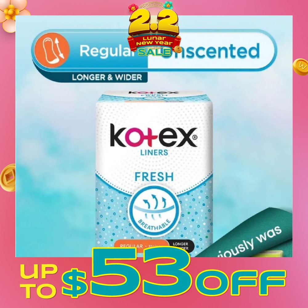 Kotex Fresh Panty Liner Regular Unscented (Longer & Wider) is made with comfortable soft material designed to help prevent irritation. Kotex Fresh Liners are breathable and dermatologically tested to make you feel secure, confident and comfortable the whole day. Ideal for before and after your period and everyday use.