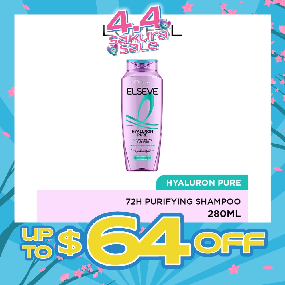 Our NEW L'Oréal Paris Elseve Hyaluron Pure 72H Purifying Shampoo balances your hair's ideal moisture level for soft, smooth and shiny hair*. It is enriched with [Hyaluronic acid + Salicylic acid], that purifies the scalp by removing oil & impurities. It also provides deep hydration to the hair, nourishing it from the roots to the ends.