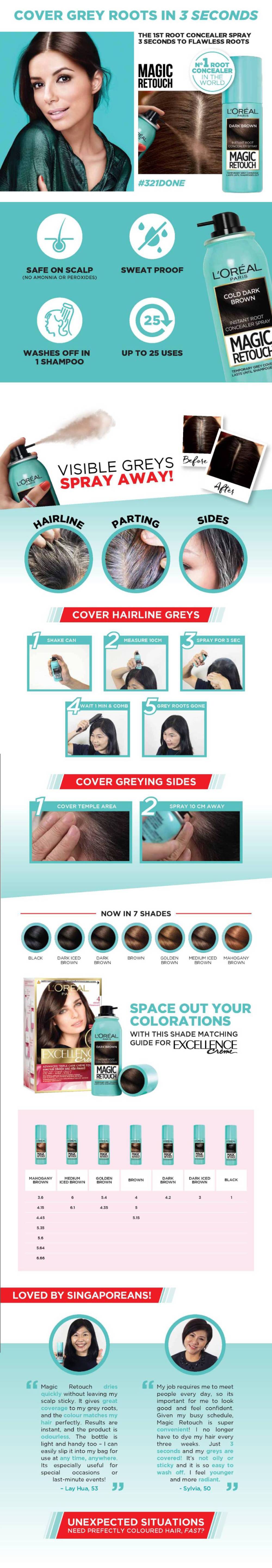 2. Keep the product upright. Apply 10 cm from roots or temples to dry styled hair. Don't overspray.