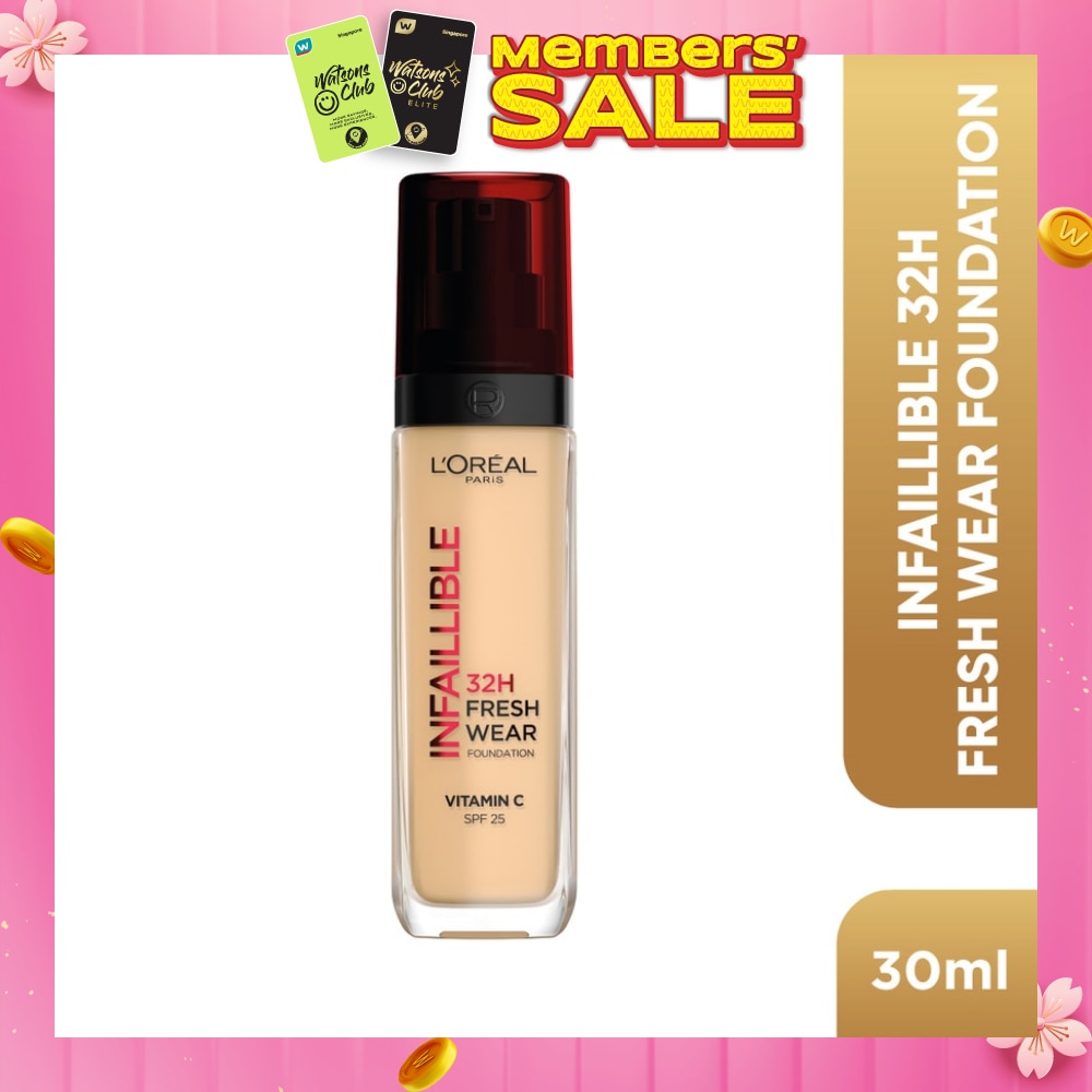 The new Infaillible 32HR Fresh Wear Liquid Foundation infused with Vitamin C has a lightweight texture that allows the skin to breathe and lasts up to 32 hours. This Infaillible liquid foundation is transfer-resistant and contains SPF 25 to protect the skin, while maintaining fresh and long-lasting full coverage throughout the day. With this Fresh Wear foundation, longwear no longer means thick and heavy coverage. The innovative oxygen technology gives your skin a lightweight feel, while the ultra-stretchable formula ensures full coverage application.