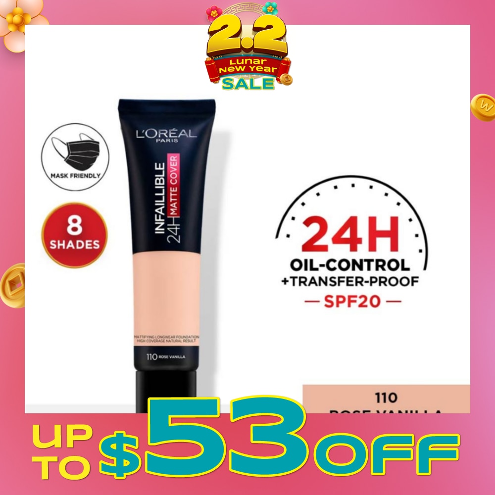 L'OREAL PARIS Infallible 24H Matte Cover Liquid Foundation 110 Rose Vanilla SPF20 35ml