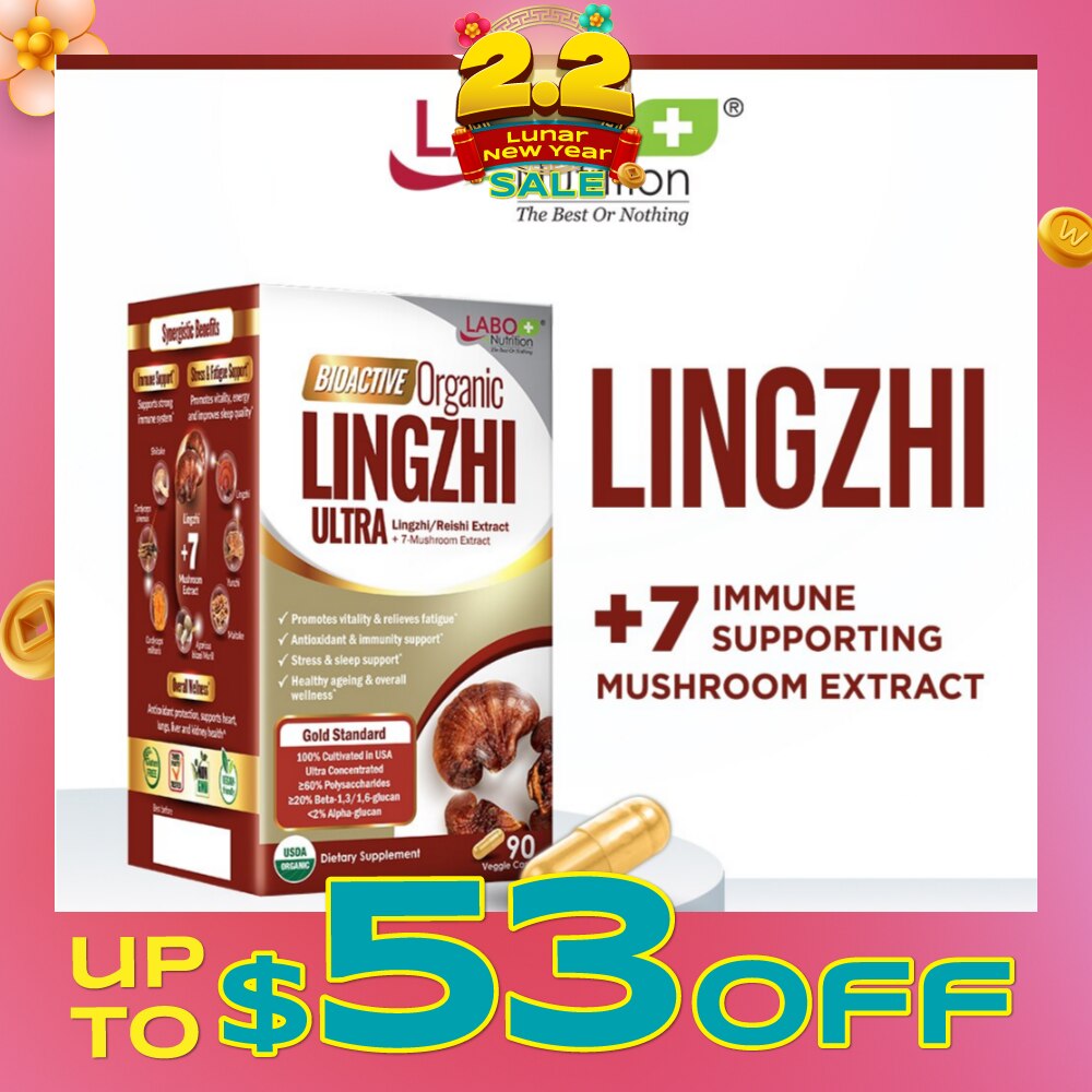 LABO NUTRITION Bioactive Organic Lingzhi Ultra Dietary Supplement Veggie Capsule (For Immunity, Calm, Energy, Sleep Support & Stress Relief) 90s