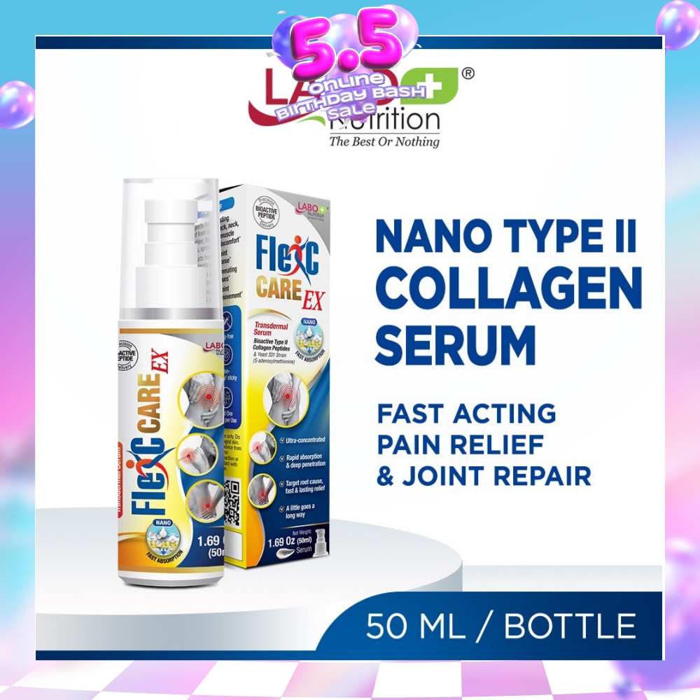 Labo Flexc Care Ex Transdermal Serum With Bioactive Type Ii Collagen Peptides Is The Must Have Joint And Muscle Care For Active And Pain-Free Mobility. More Than A Temporary Relief, And More Effective Than Medicated Oils Or Glucosamine Creams, Flexc Care Ex Delivers Highly Concentrated Bioactive Type Ii Collagen Peptides And Yeast 331 Strain (S-Adenosylmethionine) To Deeply And Rapidly Penetrate Into Skin To Reach The Affected Areas For Effective Long Lasting Relief.
