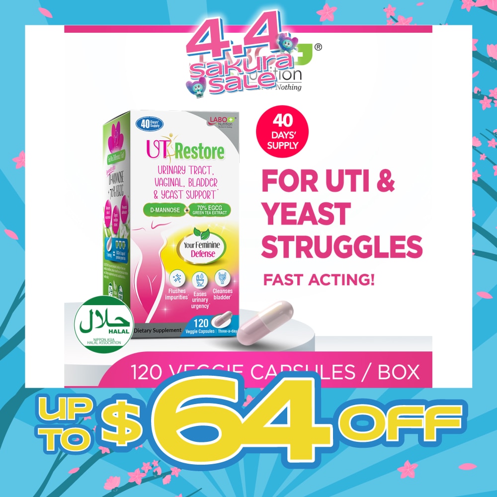 LABO NUTRITION UTRestore Urinary Tract, Vaginal, Bladder & Yeast Support Dietary Supplement Veggie Capsules (With D-Mannose & EGCG Green Tea Extract) 120s