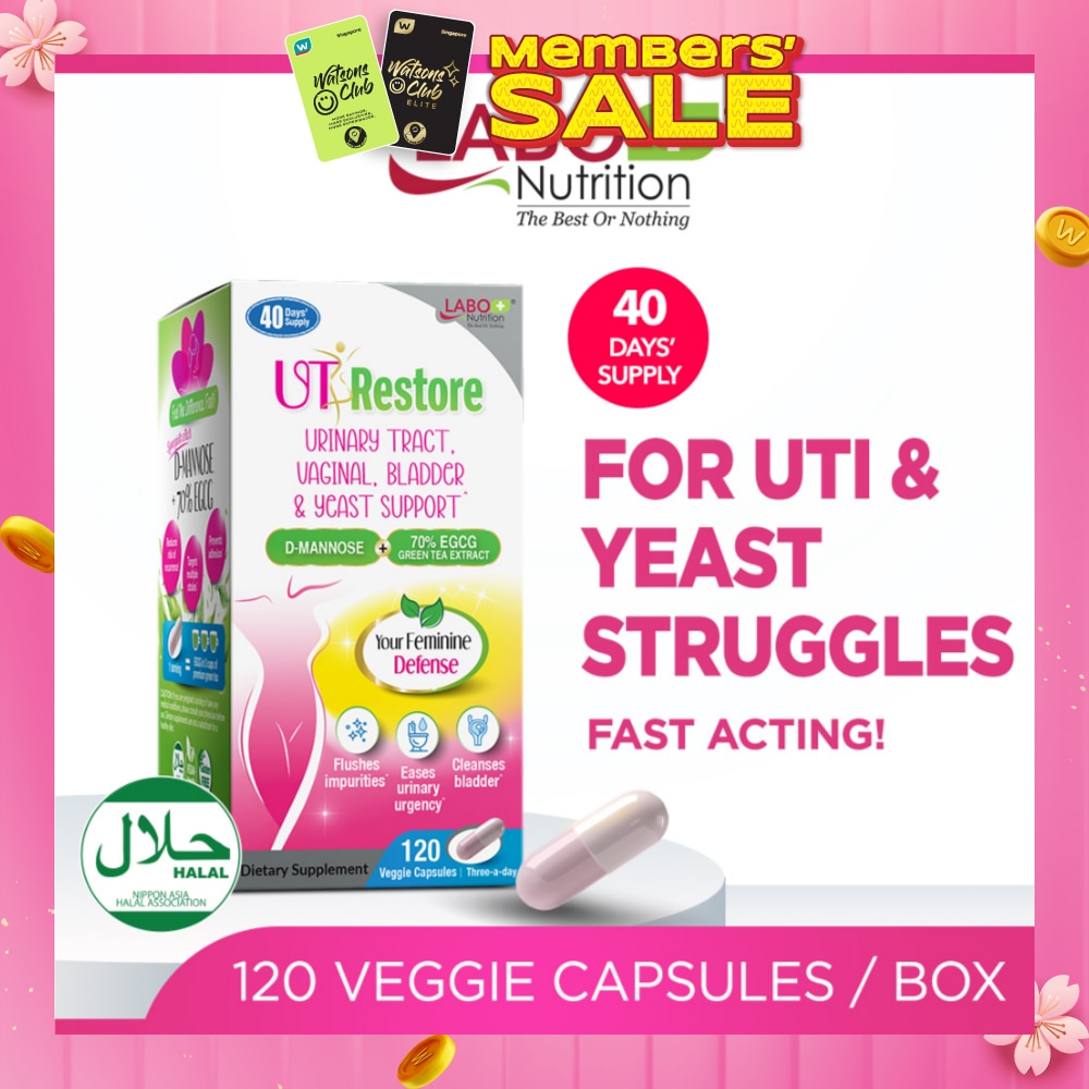 UTRestore Urinary Tract, Vaginal, Bladder & Yeast Support Dietary Supplement Veggie Capsules (With D-Mannose & EGCG Green Tea Extract) 120s