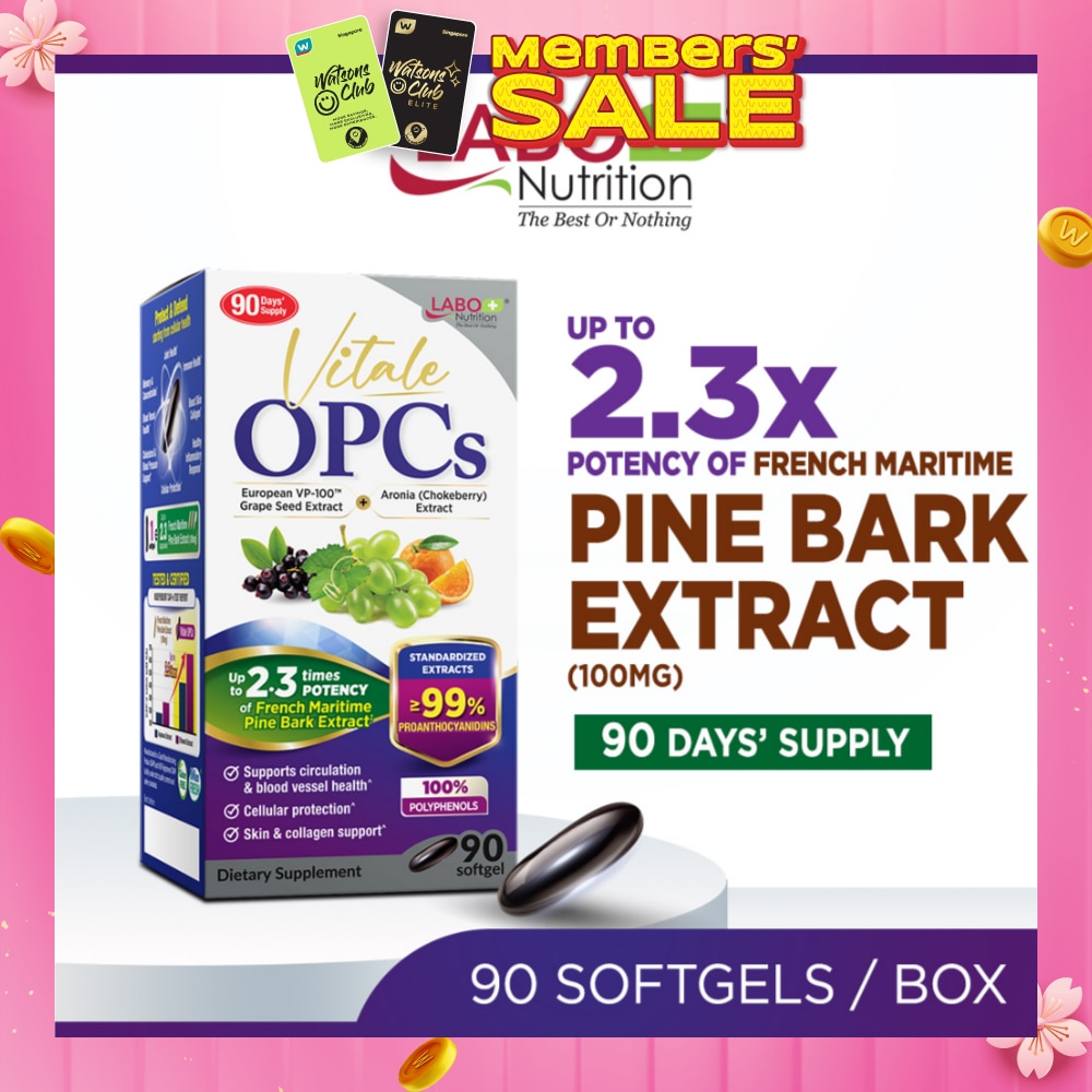 Vitale OPCs Dietary Supplement Softgel (European Grape Seed Extract For Radiant Skin, Immunity, Heart Health, Healthy Circulation & Antioxidant Protection) 90s