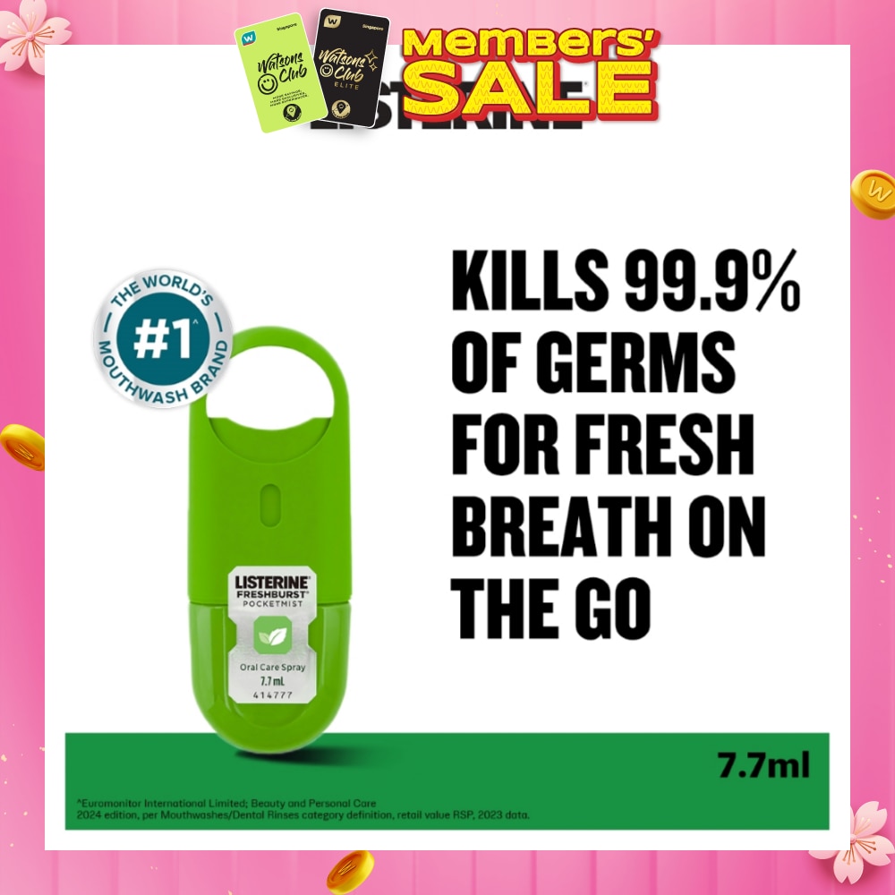 Refresh your mouth anytime, anywhere with Listerine® Freshburst PocketMist Oral Care Fresh Breath Mist Mouthspray.